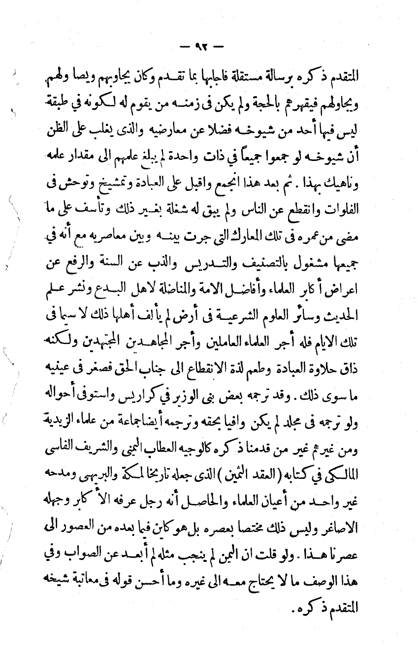 وَقد تَرْجمهُ بعض بني الْوَزير فِي كراريس وَاسْتوْفى أَحْوَاله وَلَو تَرْجمهُ فِي مُجَلد لم يكن وافيا بِحقِّهِ وترجمه أَيْضا جمَاعَة من عُلَمَاء الزيدية وَمن غَيرهم من قدمنَا ذكره كالوجيه العطاب اليمني والشريف الفاسي المالكي فِي كِتَابه العقد الثمين الذي جعله تَارِيخا لمَكَّة والبريهي ومدحه غير وَاحِد من أَعْيَان الْعلمَاء وَالْحَاصِل أَنه رجل عرفه الأكابر وجهله الأصاغر وَلَيْسَ ذَلِك مُخْتَصًّا بعصره بل هُوَ كاين فِيمَا بعده من العصور إِلَى عصرنا هَذَا