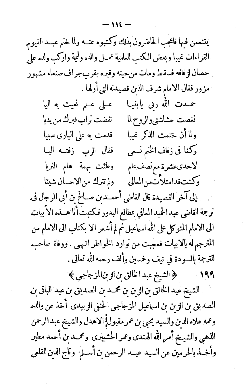 إِلَى آخر القصيدة قَالَ القاضى أَحْمد بن صَالح بن أَبى الرِّجَال فِي تَرْجَمَة القاضى عبد الحميد الْمعَافي بمطالع البدور فَكتبت أَنا هَذِه الأبيات إِلَى الإِمَام المتَوَكل على الله إِسْمَاعِيل ثمَّ لم أشعر إِلَّا بِكِتَاب إِلَى الإِمَام من المترجم لَهُ بالأبيات فعجبت من توارد الخواطر انْتهى
