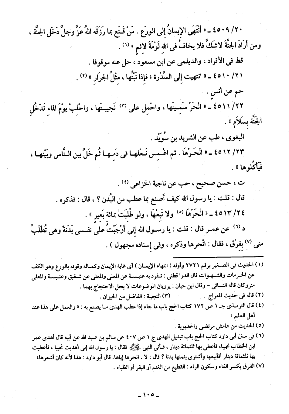 22/ 4511 - "انْحَرْ سَمِينَها، واحْمِل على (¬3) نَجيبتَها، واحْلِبْ يوْمَ الماءِ تَدْخُلِ الجَنَّة بِسَلام".