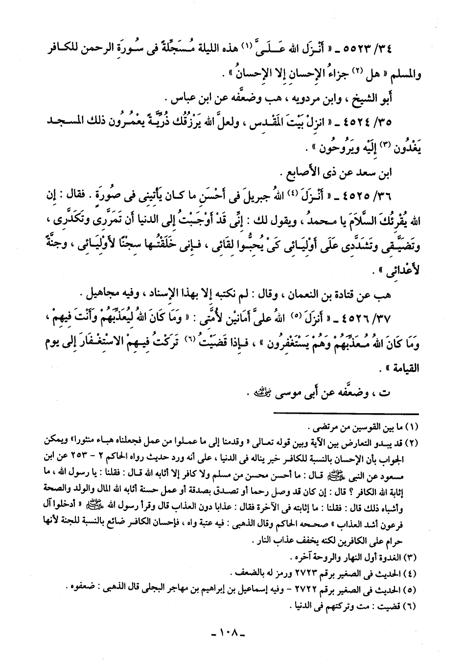 34/ 5523 - "أَنْزَل الله عَلَيَّ (¬1) هذه الليلة مُسَجِّلةً في سُورَةِ الرحمن للكافر والمسلم "هل (¬2) جزاءُ الإِحسانِ إِلا الإِحسانُ".