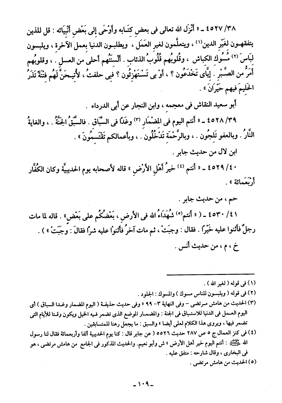40/ 4529 - "أَنتم (¬4) خيرُ أَهْلِ الأَرْضِ" قاله لأصحابه يوم الحديبيَّة وكان الكُفَّار أَرْبَعَمائة".