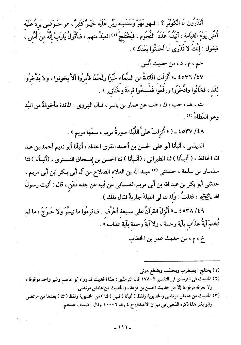 48/ 4537 - ("أُنزِلتْ عليَّ اللَّيلة سورةُ مريم، سمِّها مريم".