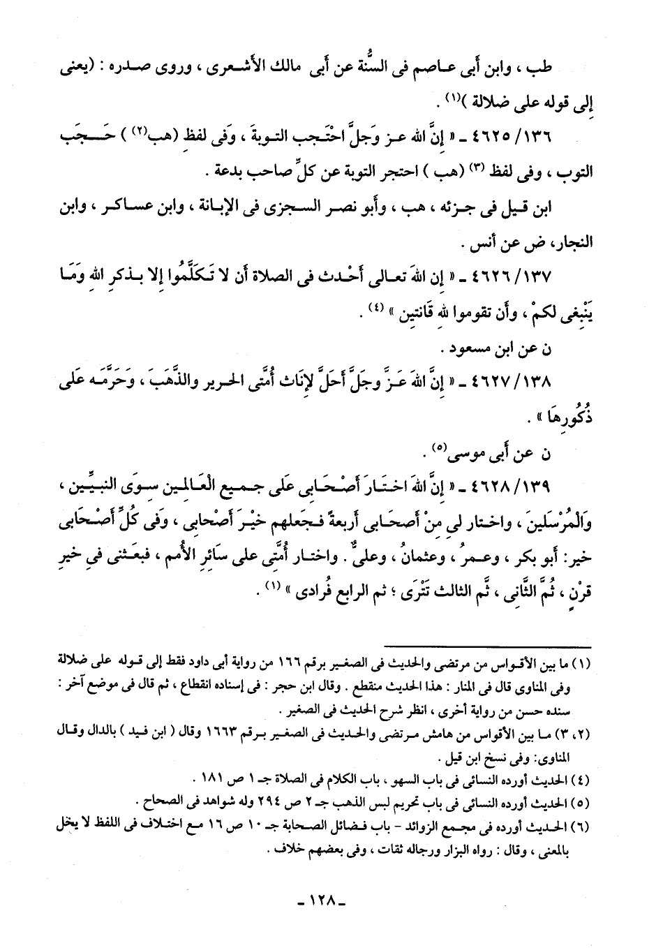 136/ 4625 - "إِنَّ الله عز وَجلَّ احْتَجب التوبةَ، وَفى لفظِ (هب) (¬2) حَجَب التوب، وفي لفظ (¬3) (هب) احتجر التوبة عن كلِّ صاحب بدعة.