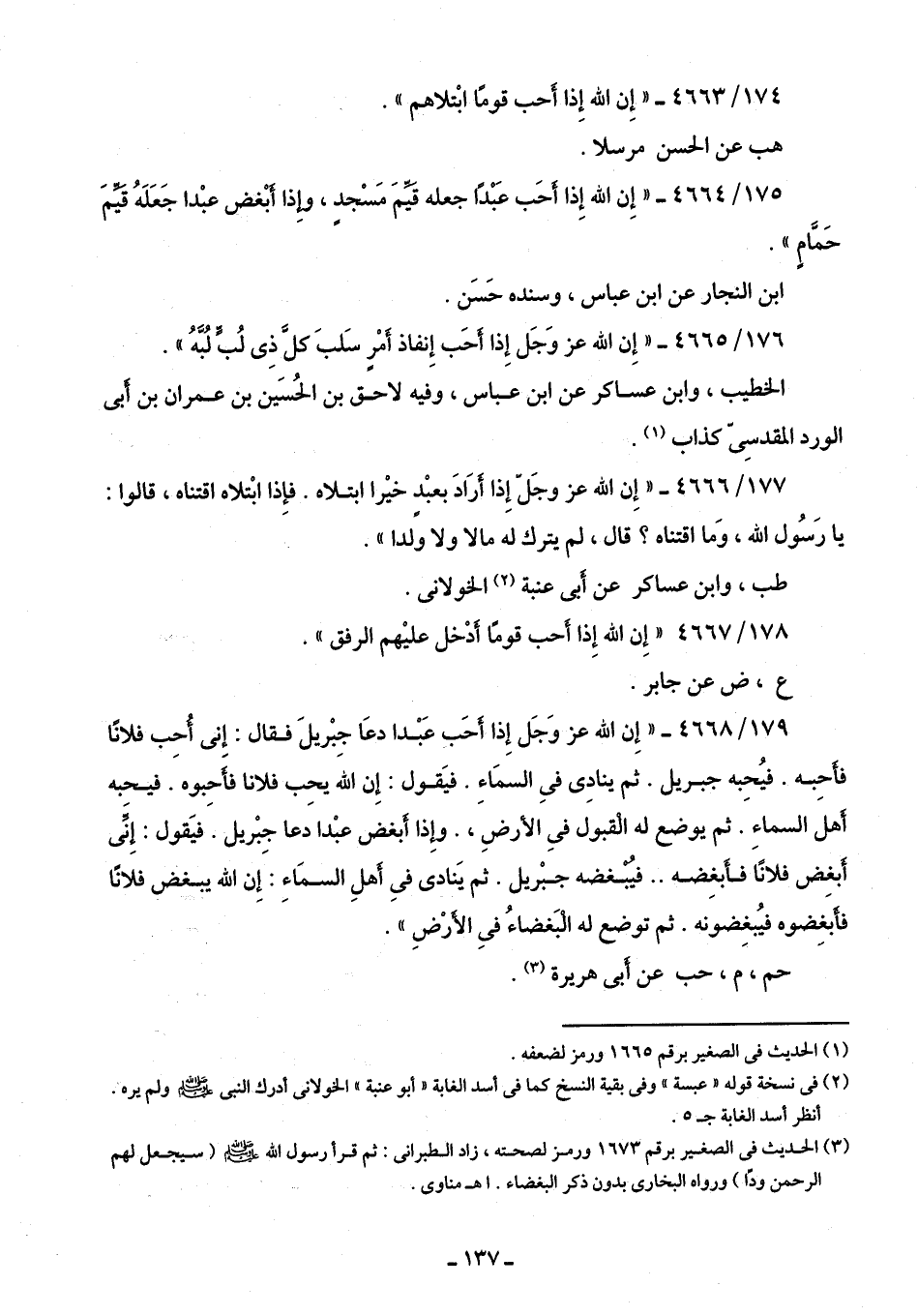(¬3) الحديث في الصغير برقم 1673 ورمز لصحته، زاد الطبراني: ثم قرأ رسول الله - صلى الله عليه وسلم - (سيجعل لهم الرحمن ودًا) ورواه البخاري بدون ذكر البغضاء. اهـ مناوى.