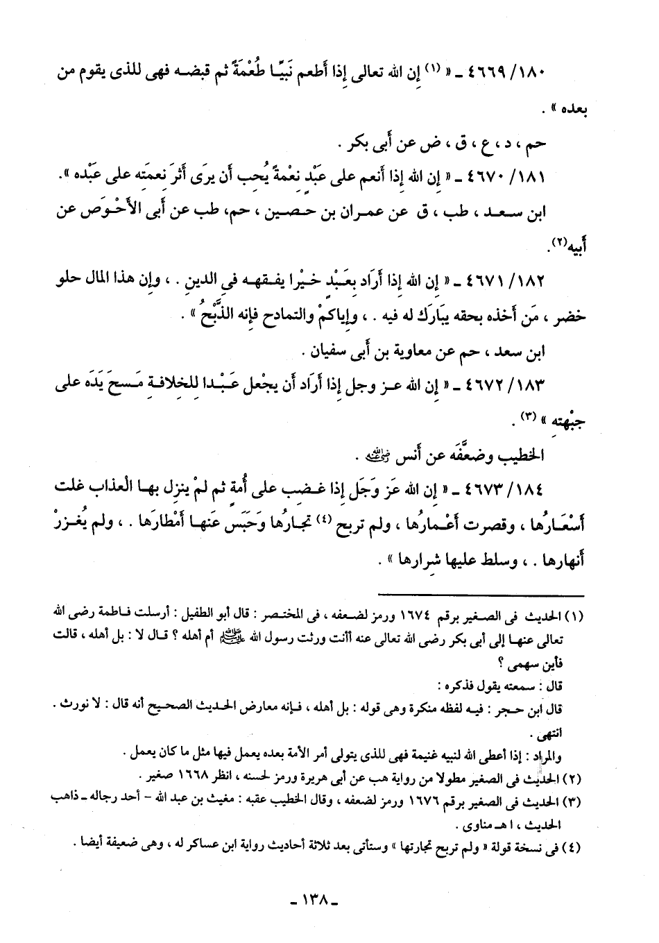 180/ 4669 - " (¬1) إِن الله تعالى إِذا أَطعم نَبيًّا طُعْمَةً ثم قبضه فهي للذي يقوم من بعده".