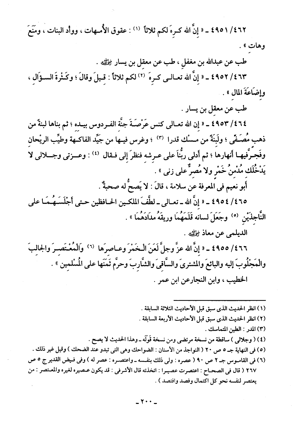 463/ 4952 - "إِنَّ الله تعالى كرِهَ (¬2) لكم ثلاثًا: قِيلَ وقال؛ وكَثْرةَ السؤَالِ، وإضَاعَةَ المالِ".