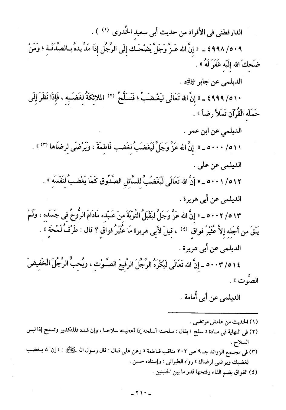509/ 4998 - "إِنَّ الله عَزَّ وَجَلَّ يَضْحَك إِلَى الرَّجُل إِذَا مَدَّ يدهُ بالصَّدَقَةِ؛ وَمَنْ ضَحِكَ الله إِلَيهِ غَفَرَ لَهُ".