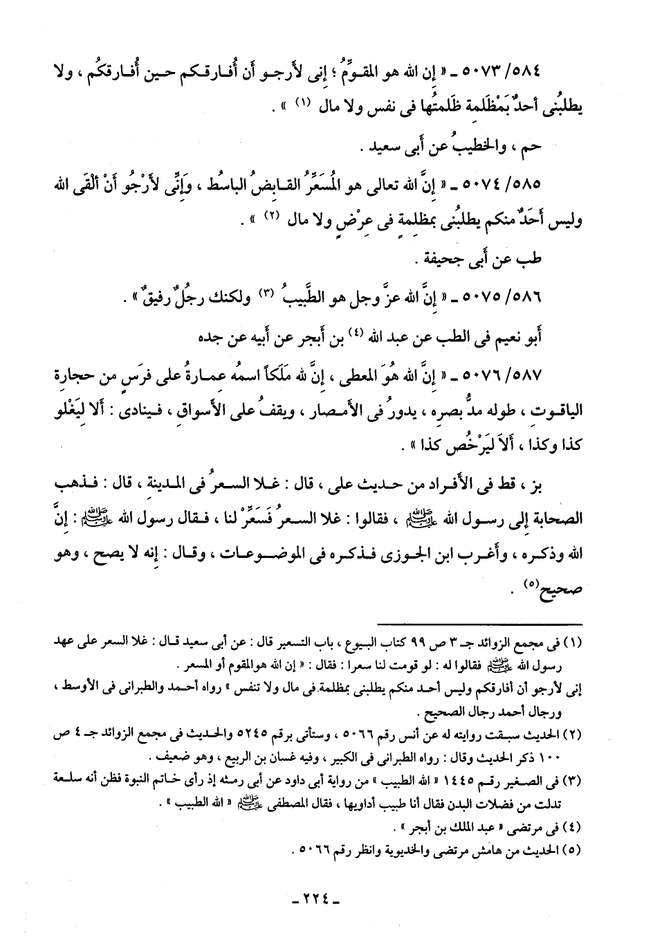585/ 5074 - "إِنَّ الله تعالى هو المُسَعِّرُ القابِضُ الباسطُ، وَإِنِّي لأَرْجُو أَنْ ألْقَى الله وليس أَحَدٌ منكم يطلبُنى بمظلِمةٍ في عِرْضٍ ولا مال (¬2) ".