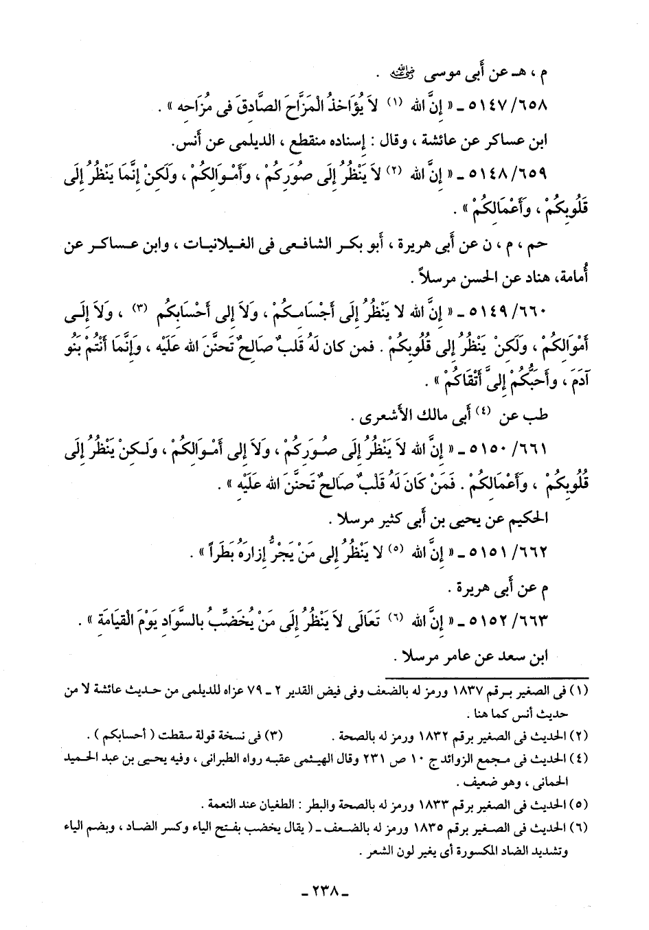 659/ 5148 - "إِنَّ الله (¬2) لَا يَنْظُرُ إِلَى صُوَرِكُمْ، وَأَمْوَالِكُمْ، وَلَكِنْ إِنَّمَا يَنْظُرُ إِلَى قَلُوبِكُمْ، وَأعْمَالِكُمْ".
