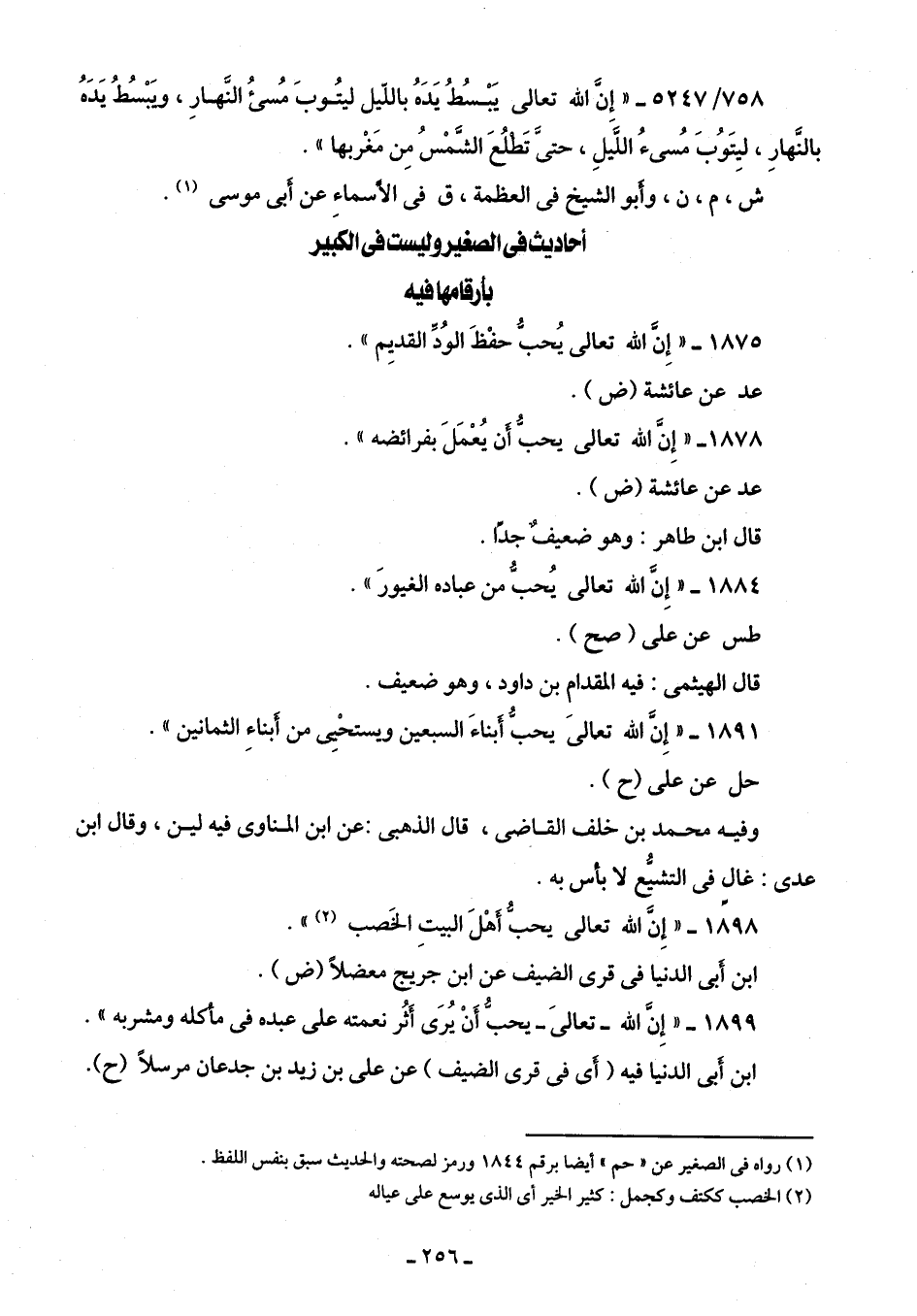 أحاديث في الصغير وليست في الكبير بأرقامها فيه