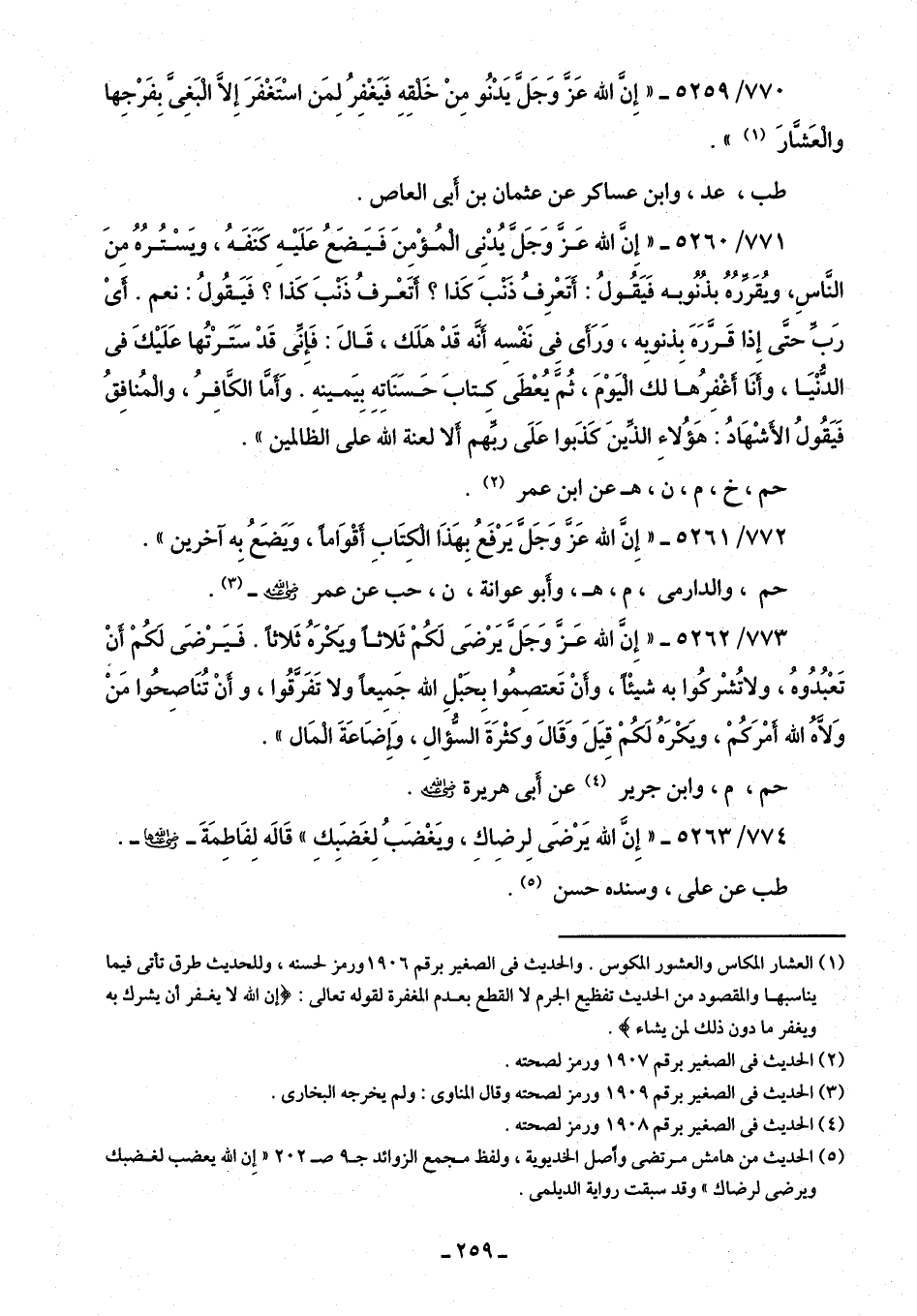 770/ 5259 - "إِنَّ الله عَزَّ وَجَلَّ يَدْنُو مِنْ خَلقه فَيَغْفِرُ لمَن اسْتَغْفَرَ إِلَّا الْبَغِيَّ بفَرْجِها والْعَشَّارَ (¬1) ".