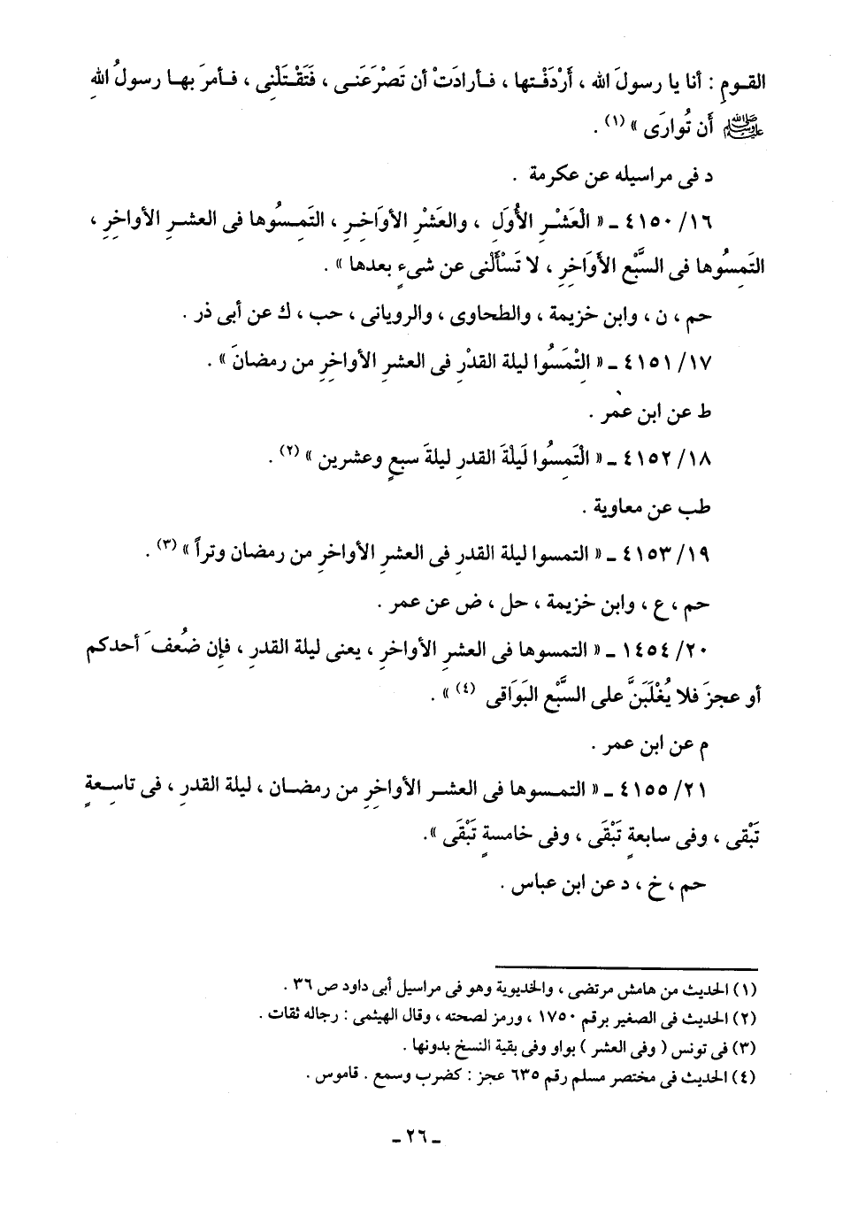 18/ 4152 - "الْتَمِسُوا لَيلةَ القدرِ ليلةَ سبعٍ وعشرين" (¬2).