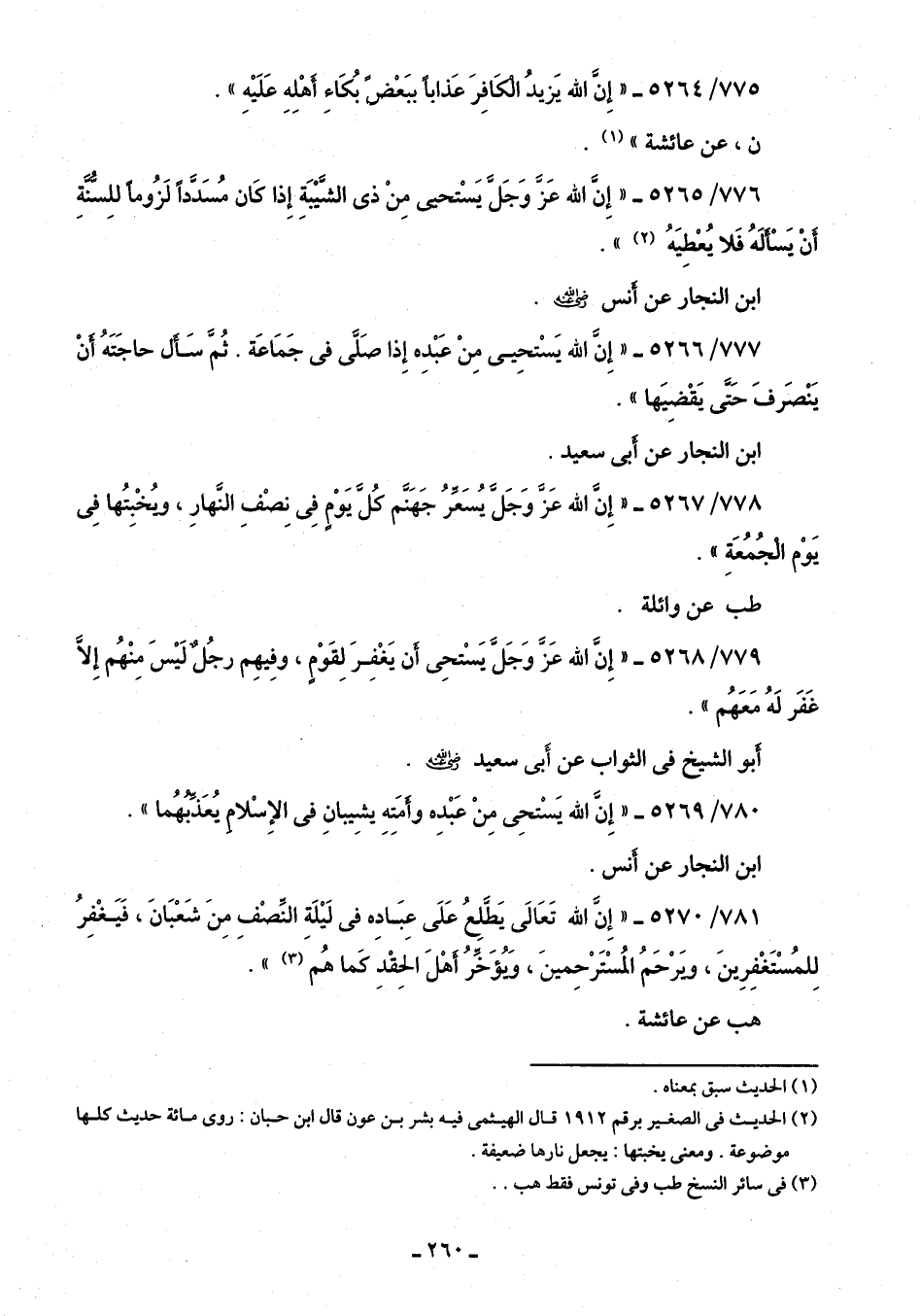 779/ 5268 - "إِنَّ الله عَزَّ وَجَل يَسْتحِى أَن يَغْفِرَ لِقَوْمٍ، وفِيهِم رجُلٌ لَيسَ مِنْهُم إِلَّا غَفَر لَهُ مَعَهُم".