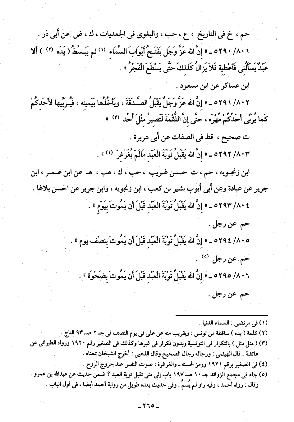 803/ 5292 - "إِنَّ الله يَقْبَلُ تَوْبَةَ الْعَبْدِ مَا لَمْ يُغَرْغِرْ (¬4) ".