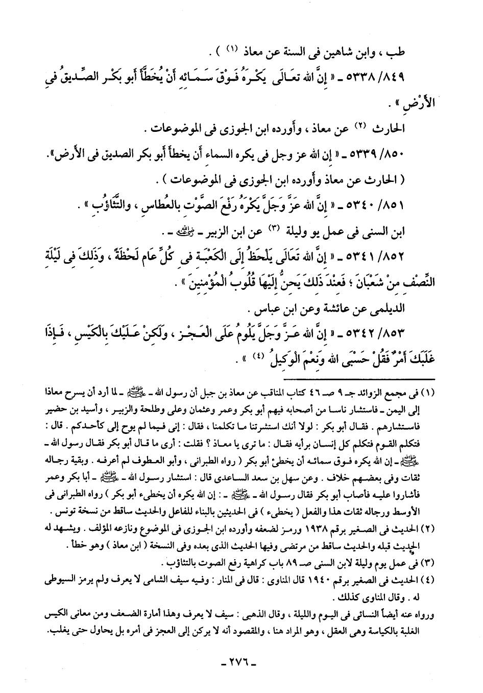 853/ 5342 - "إِنَّ الله عَز وَجَل يَلُومُ عَلَى العَجْز، وَلَكِنْ عَلَيكَ بِالكَيسِ، فَإِذَا غَلَبَكَ أمْر فَقُلْ حَسْبَى الله وَنِعْمَ الوَكِيلُ (¬4) ".