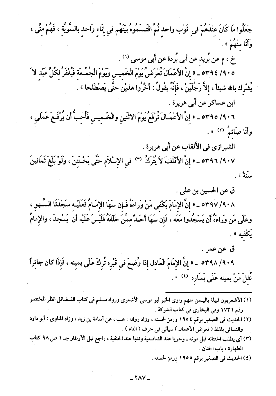 906/ 5395 - "إِن الأعْمَال تُرْفَعُ يَوْمَ الاثْنَينِ والخَمِيسِ فَأحبُّ أن يُرْفَعَ عَمَلي، وأنَا صَائِمُ (¬2) ".