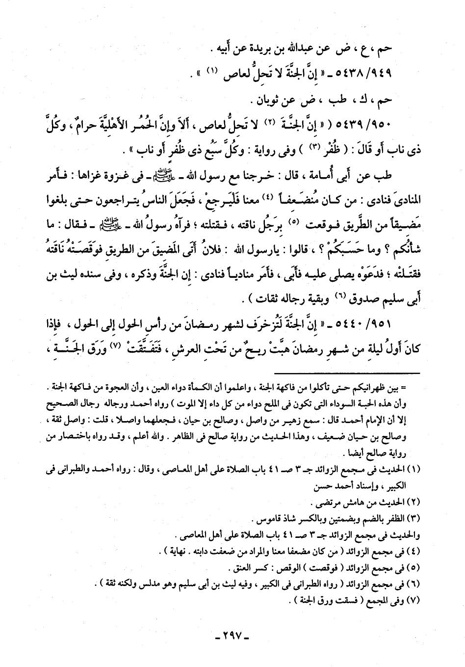 950/ 5439 - ("إِنَّ الجنّةَ (¬2) لا تَحِلُّ لعاص، ألَا وإنَّ الحُمُر الأهْلِيَّةَ حرامٌ، وكُلَّ ذي ناب أو قَال: (ظُفْر) (¬3) وفي رواية: وكُلَّ سَبُع ذي ظُفرٍ أو ناب".