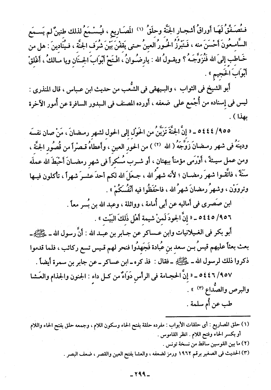 957/ 5446 - "إِنَّ الحجامة فِي الرأسِ دَوَاءٌ من كل داء: الجنون والجدام والعَشا والبرص والصُّداع (¬3) ".
