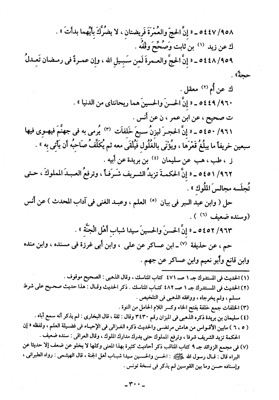 958/ 5447 - "إِنَّ الحجَّ والعُمْرَةَ فَرِيضتانِ، لا يضُرّكَ بِأَيِّهما بدأتَ".