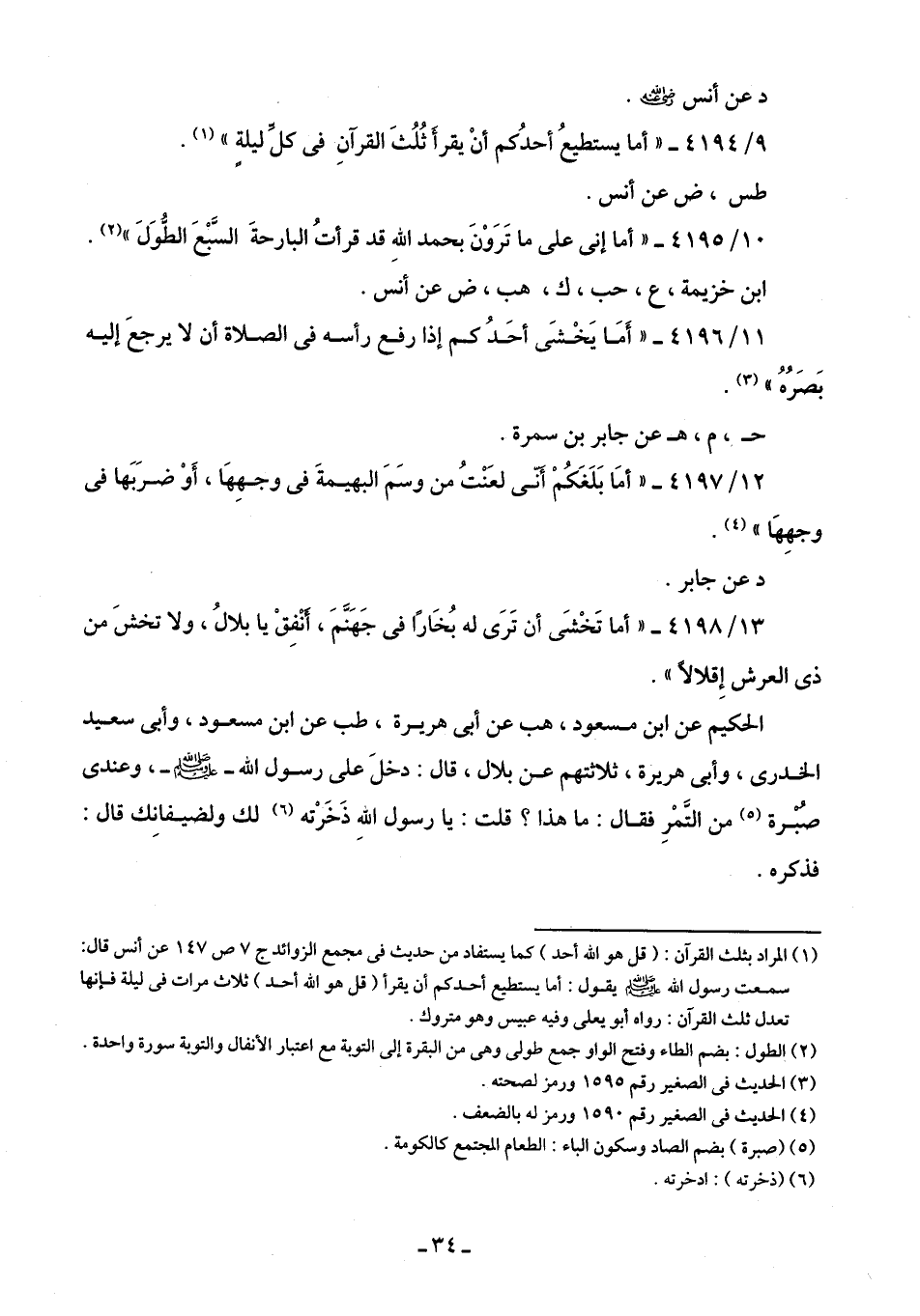 10/ 4195 - "أما إني على ما تَرَوْنَ بحمد اللهِ قد قرأتُ البارحةَ السَّبْعَ الطُّوَلَ" (¬2).