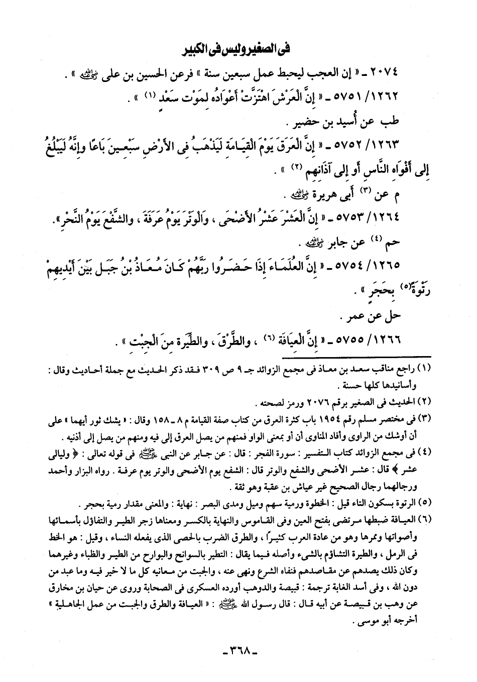 1263/ 5752 - "إِنَّ الْعَرَقَ يَوْمَ الْقِيَامَة لَيَذْهَبُ فِى الأَرْضِ سَبْعينَ بَاعًا وإِنَّهُ لَيَبْلُغُ إِلى أفْوَاهِ النَّاسِ أَو إِلى آذَانِهِم (¬2) ".
