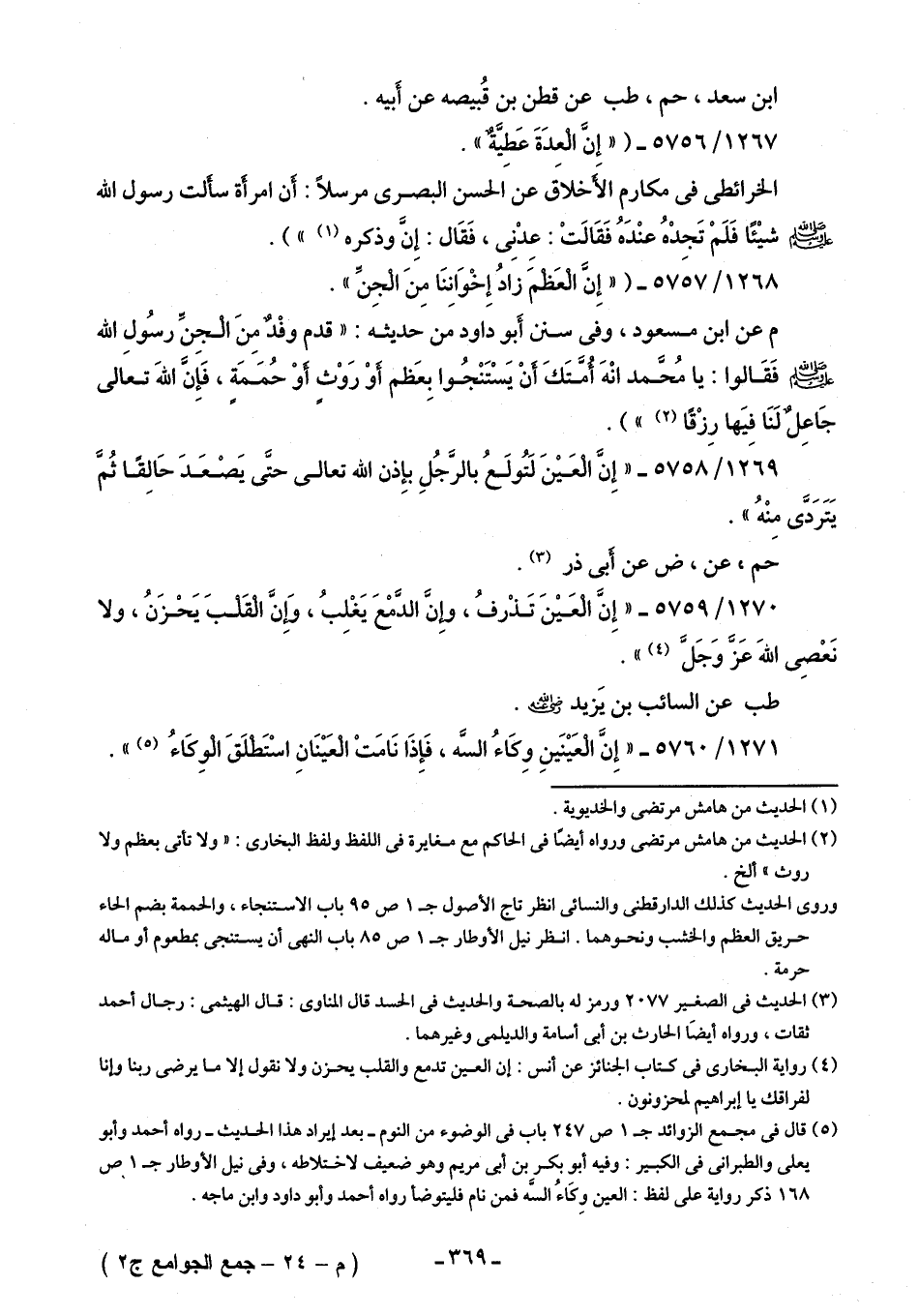 1269/ 5758 - "إِنَّ الْعَيْنَ لَتُولَعُ بالرَّجُلِ بإِذن الله تعالى حتَّى يَصْعَدَ حَالِقًا ثُمَّ يَتَرَدَّى مِنْهُ".