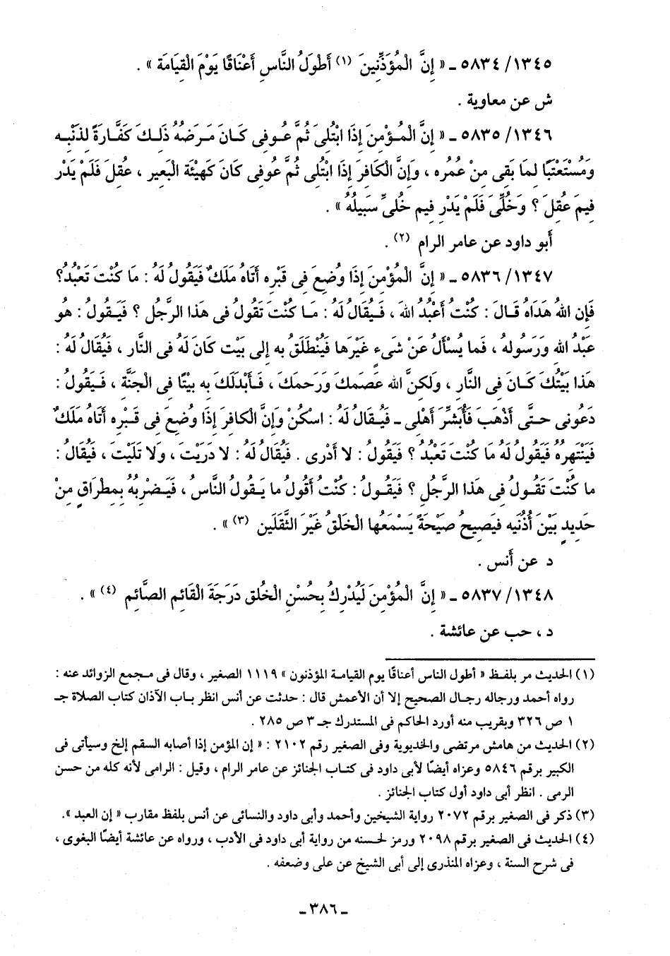 1345/ 5834 - "إِنَّ الْمُؤَذِّنِينَ (¬1) أَطْوَلُ النَّاسِ أَعْنَاقًا يَوْمَ الْقِيَامَة".