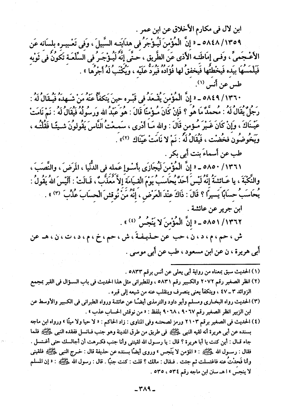 1362/ 5851 - "إِنَّ الْمُؤْمِنَ لا يَنْجُسُ (¬4) ".