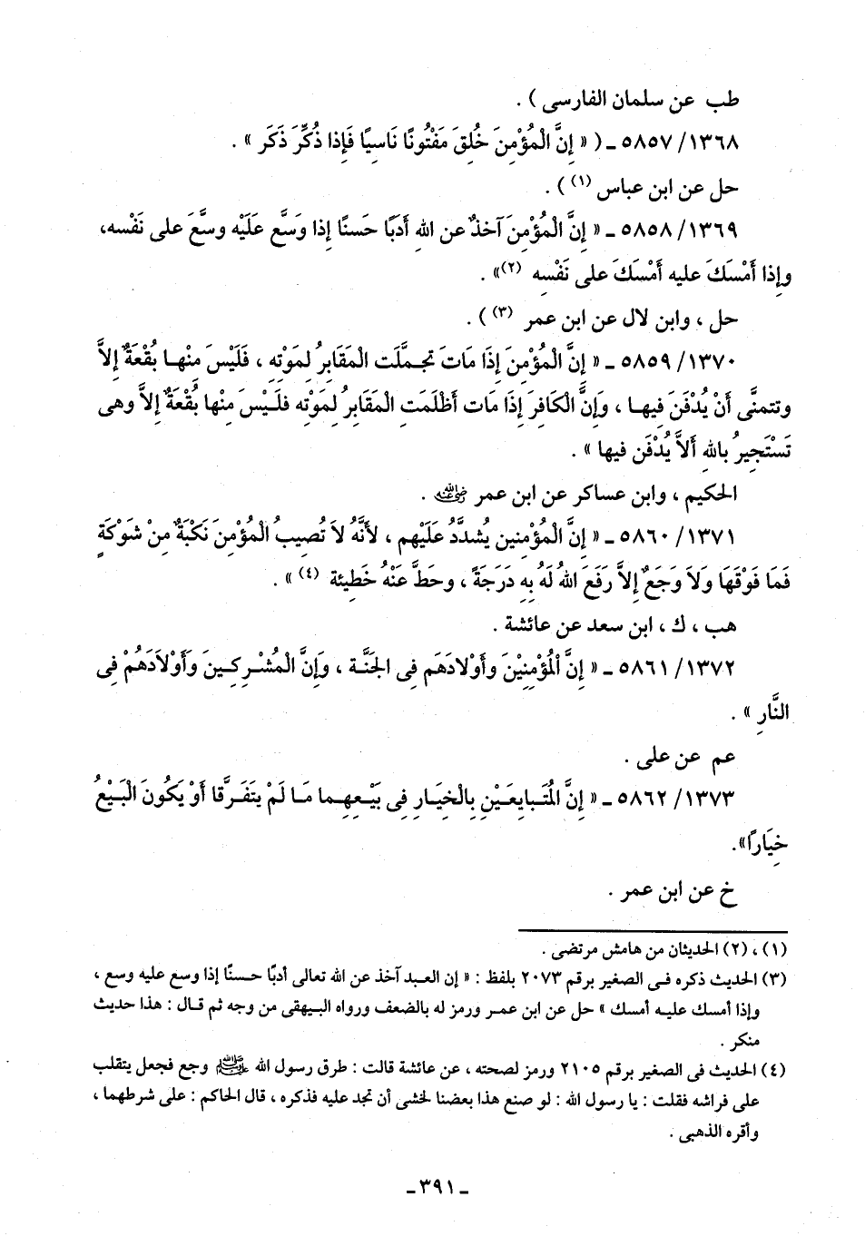 1372/ 5861 - "إِنَّ اْلمُؤْمِنِيْنَ وأَوْلادَهَم فِى الجَنَّة، وَإِنَّ الْمُشْرِكِينَ وَأَوْلَادَهُمْ فِى النَّارِ".