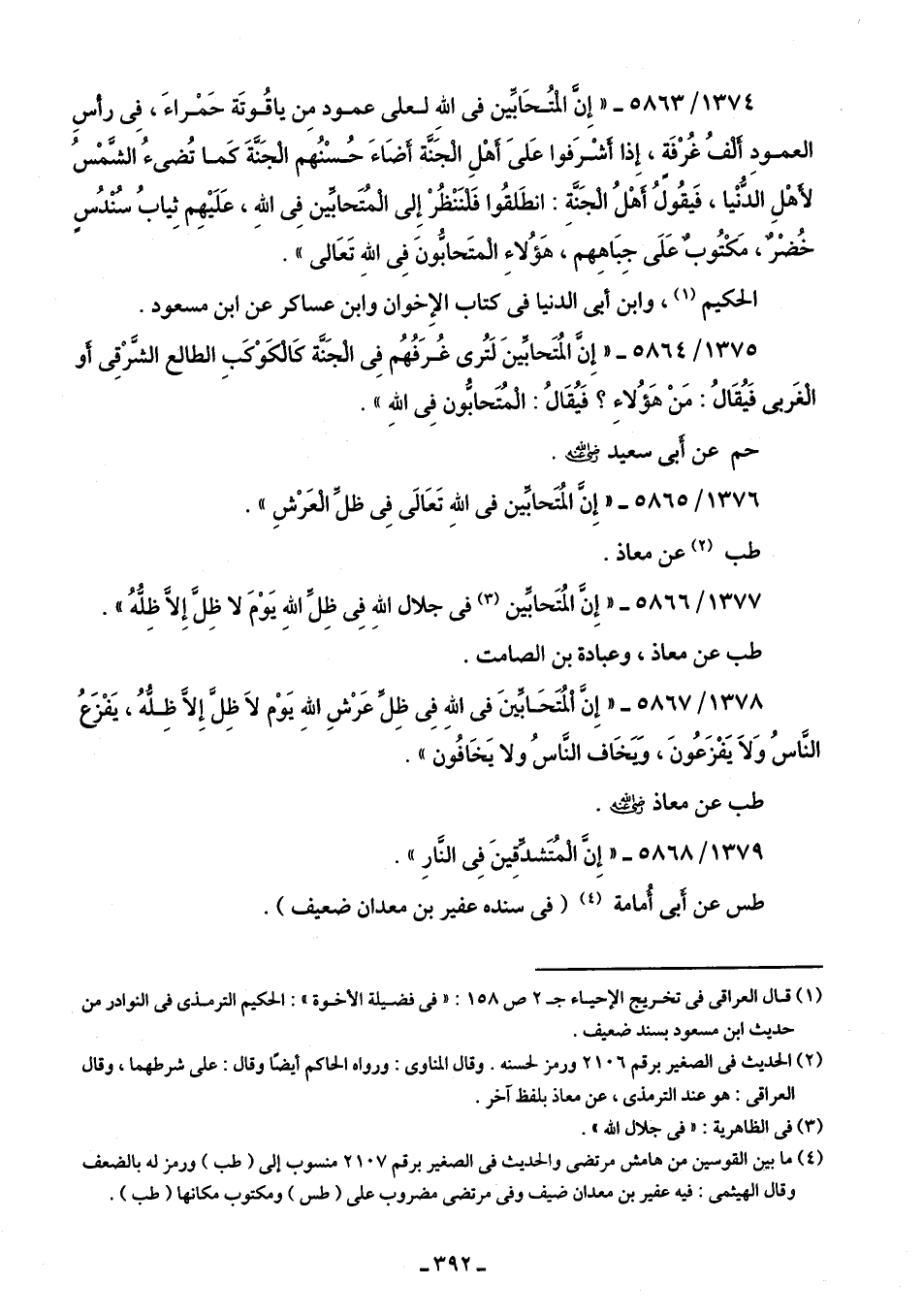 1376/ 5865 - "إِنَّ المُتَحابِّين في اللهِ تَعَالَى فِى ظلِّ الْعَرْشِ".