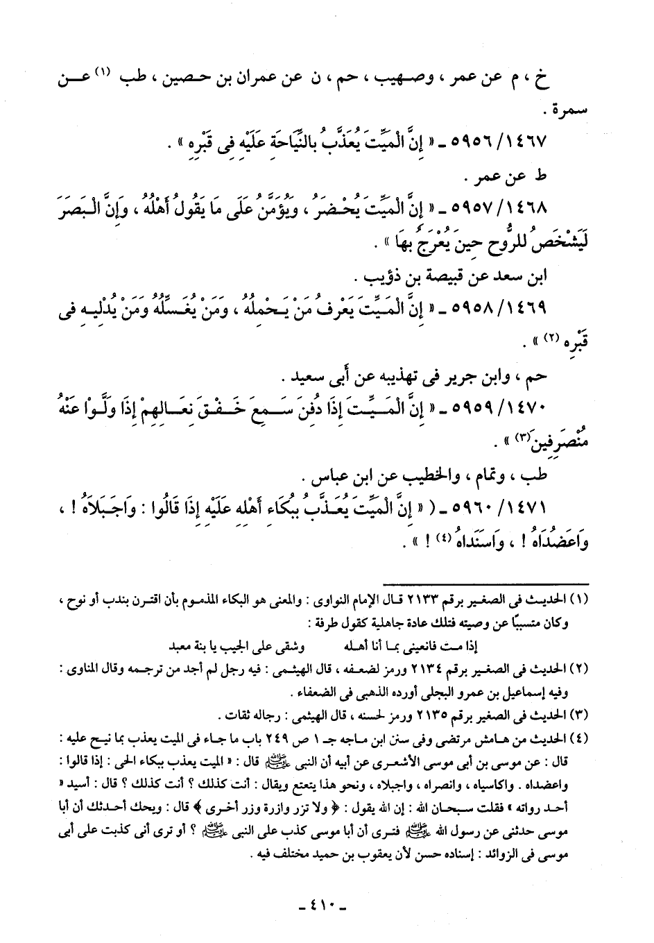 1471/ 5960 - ("إِنَّ الْمَيِّتَ يُعَذَّبُ ببُكَاءِ أَهْلِهِ عَلَيْهِ إِذَا قَالُوا: وَاجَبَلَاهُ! ، وَاعَضُدَاهُ! ، وَاسَنَداهُ (¬4)! ".