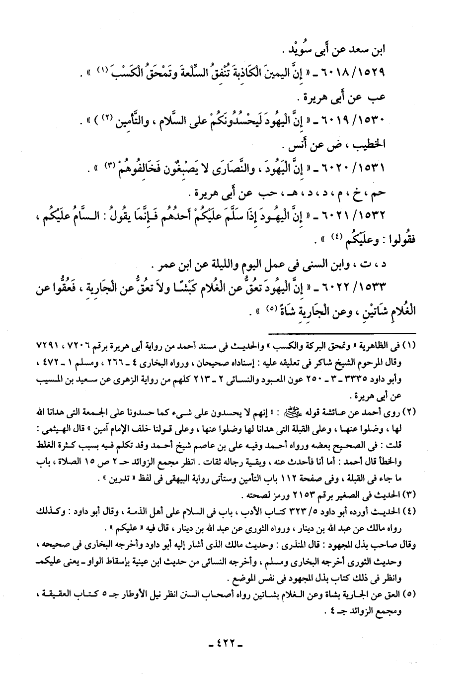 1530/ 6019 - "إِنَّ اليهُودَ لَيحْسُدُونَكُمْ على السَّلام، والتَّأمِين) (¬2) ".