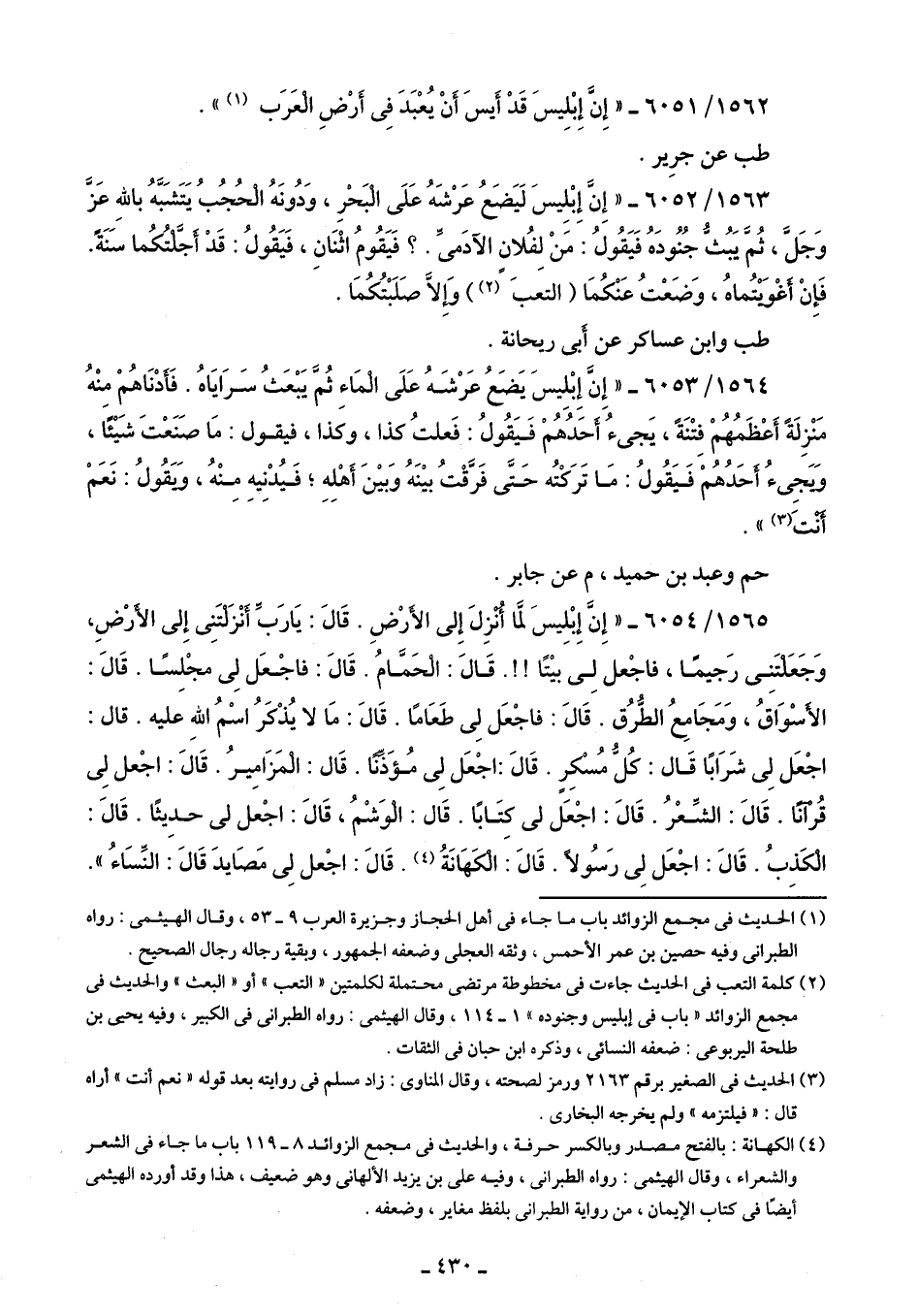 1562/ 6051 - "إِنَّ إِبْلِيسَ قَدْ أَيسَ أَنْ يُعْبَدَ فِى أَرْضِ العَرَب (¬1) ".