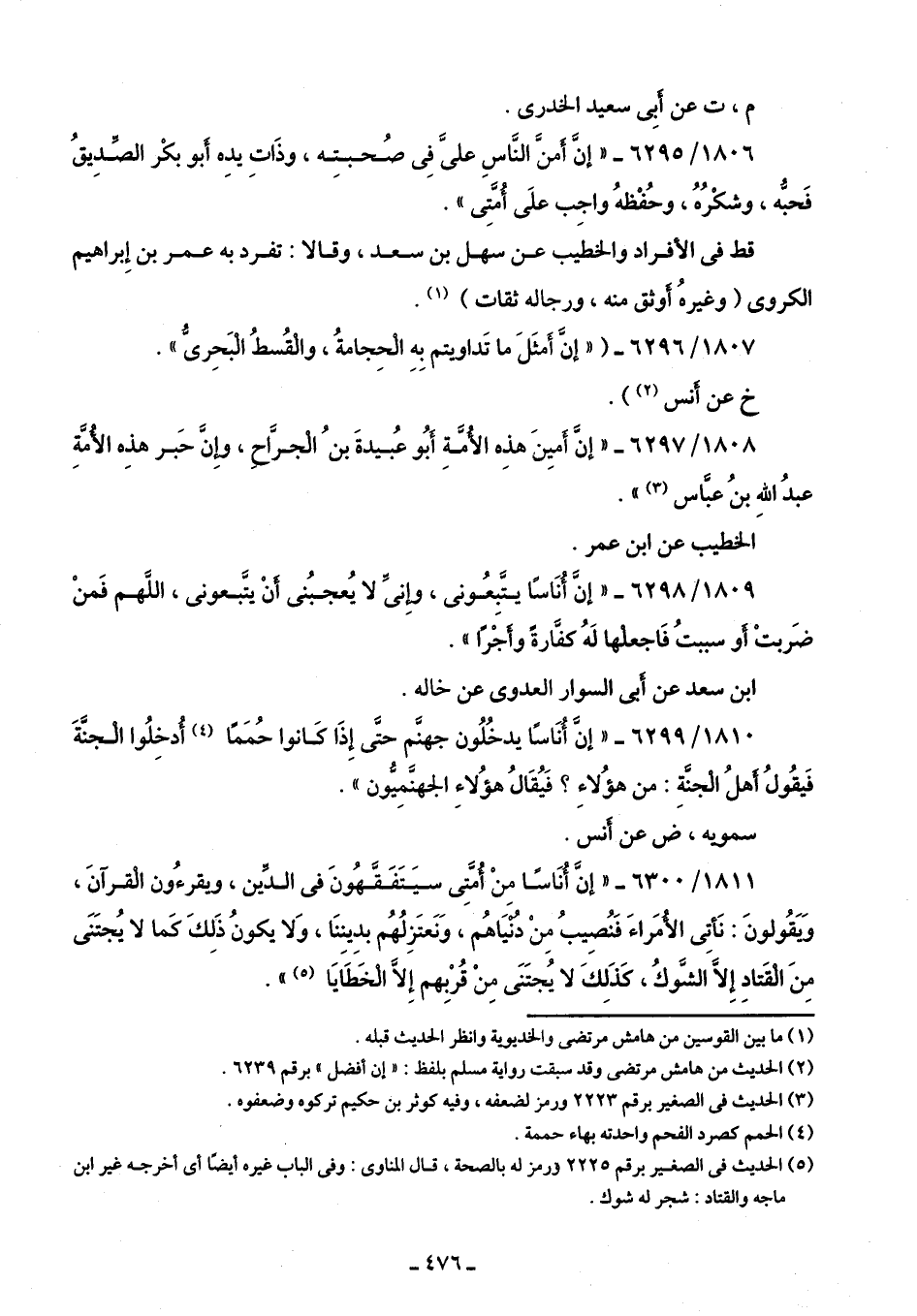 1808/ 6297 - "إنَّ أميِنَ هذِه الأُمَّةِ أبُو عُبيدةَ بنُ الجرَّاح، وإِنَّ حَبر هذِه الأُمَّةِ عبدُ اللَّهِ بنُ عبَّاس (¬3) ".
