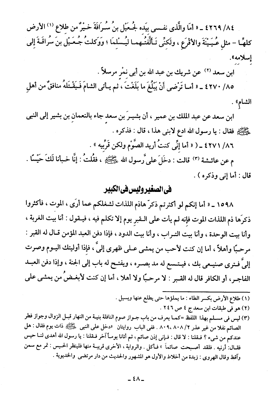 85/ 4270 - "أما تَرْضى أَنْ يَبْلُغَ ما بَلَغْتَ، ثم يأتي الشامَ فَيَقْتَلهُ منافقٌ من أهلِ الشامِ".