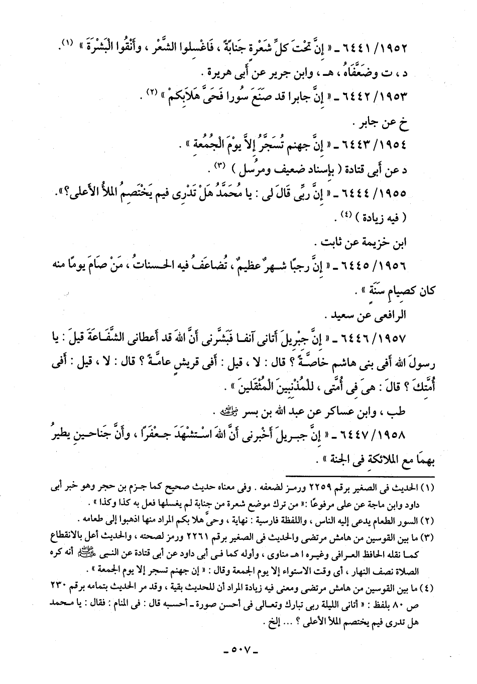 1954/ 6443 - "إِنَّ جهنم تُسَجَّرُ إِلَّا يوْمَ الْجُمُعةِ".