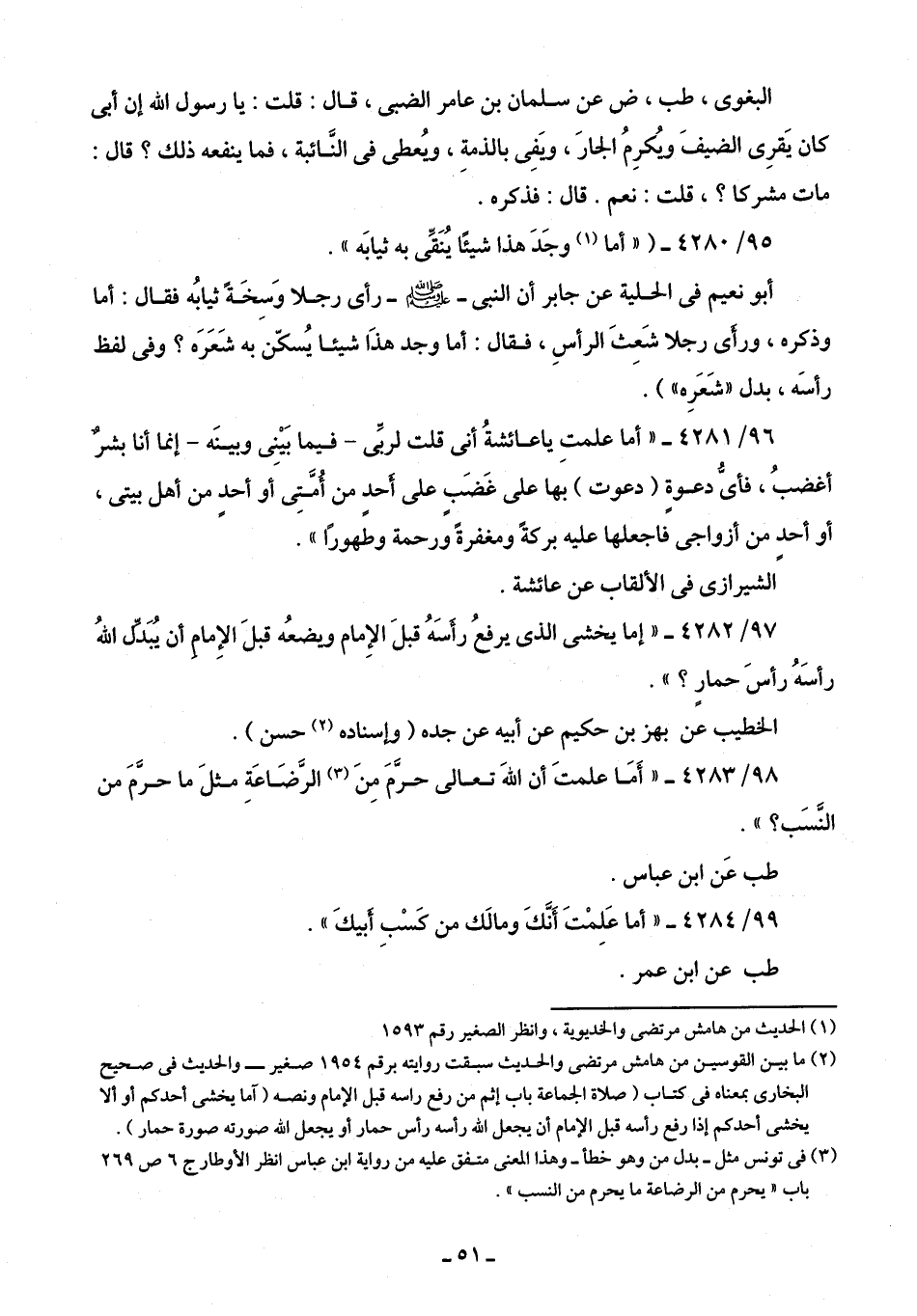 98/ 4283 - "أَمَا علمتَ أن اللهَ تعالى حرَّمَ مِنَ (¬3) الرَّضَاعَة مثلَ ما حرَّمَ من النَّسَب؟ ".