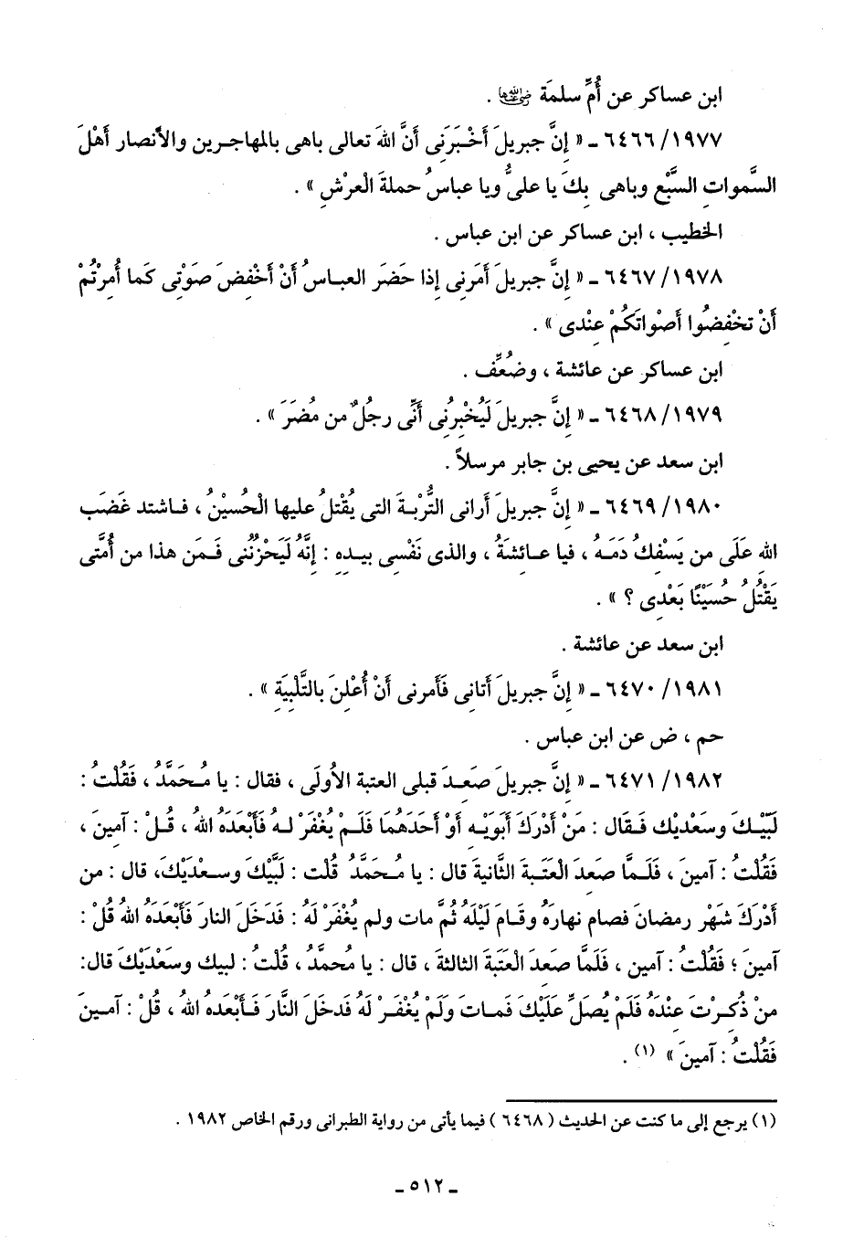 1981/ 6470 - "إِنَّ جبريلَ أَتانِى فَأَمرنى أَنْ أُعْلِنَ بالتَّلْبِيَةِ".