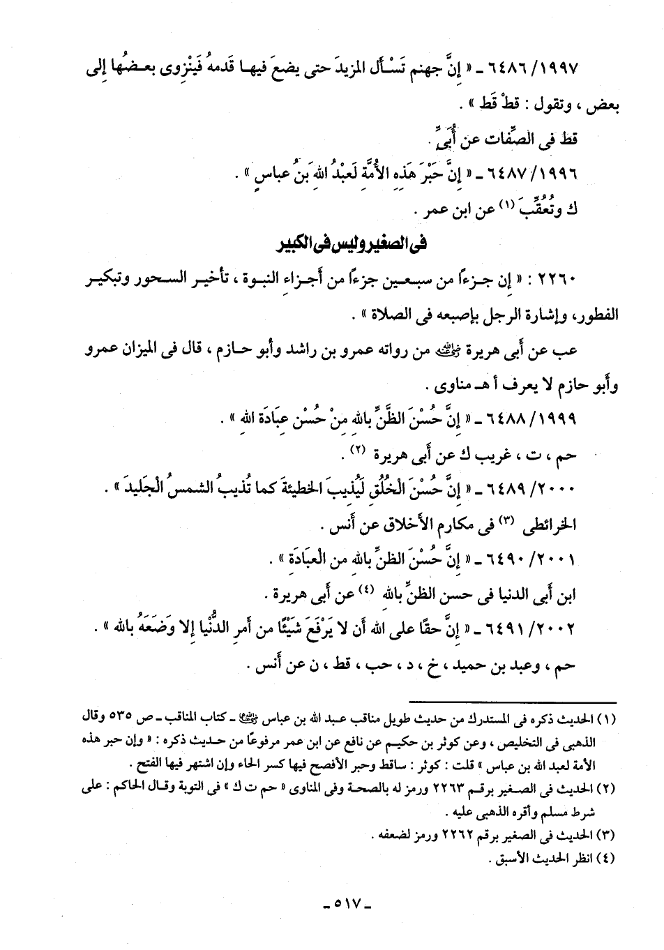 1999/ 6488 - "إِنَّ حُسْنَ الظَّنِّ باللَّهِ مِنْ حُسْن عِبَادَة اللَّهِ".