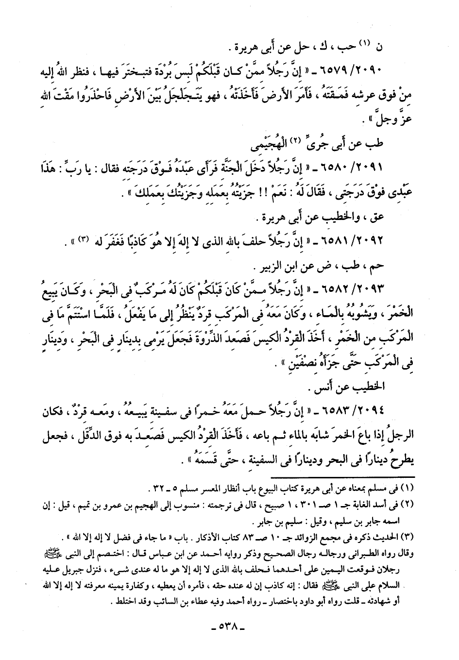 2091/ 6580 - "إِنَّ رَجُلًا دَخَلَ الْجَنَّةِ فَرَأَى عَبْدَهُ فَوْقَ دَرَجَتِهِ فقال: يا رَبِّ: هَذَا عبدِى فوْقَ دَرَجَتِى، فَقَالَ لَهُ: نَعَمْ! ! جَزَيْتُهُ بِعَمَلِهِ وَجَزَيْتُكَ بِعَمَلِكَ".