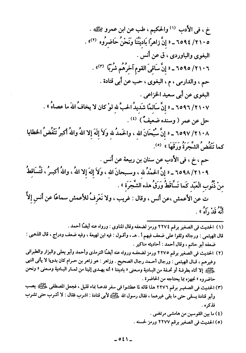 2105/ 6594 - "إِنَّ زاهرًا بَادِيَتُنَا وَنَحْنُ حَاضِرُوه (¬2) ".