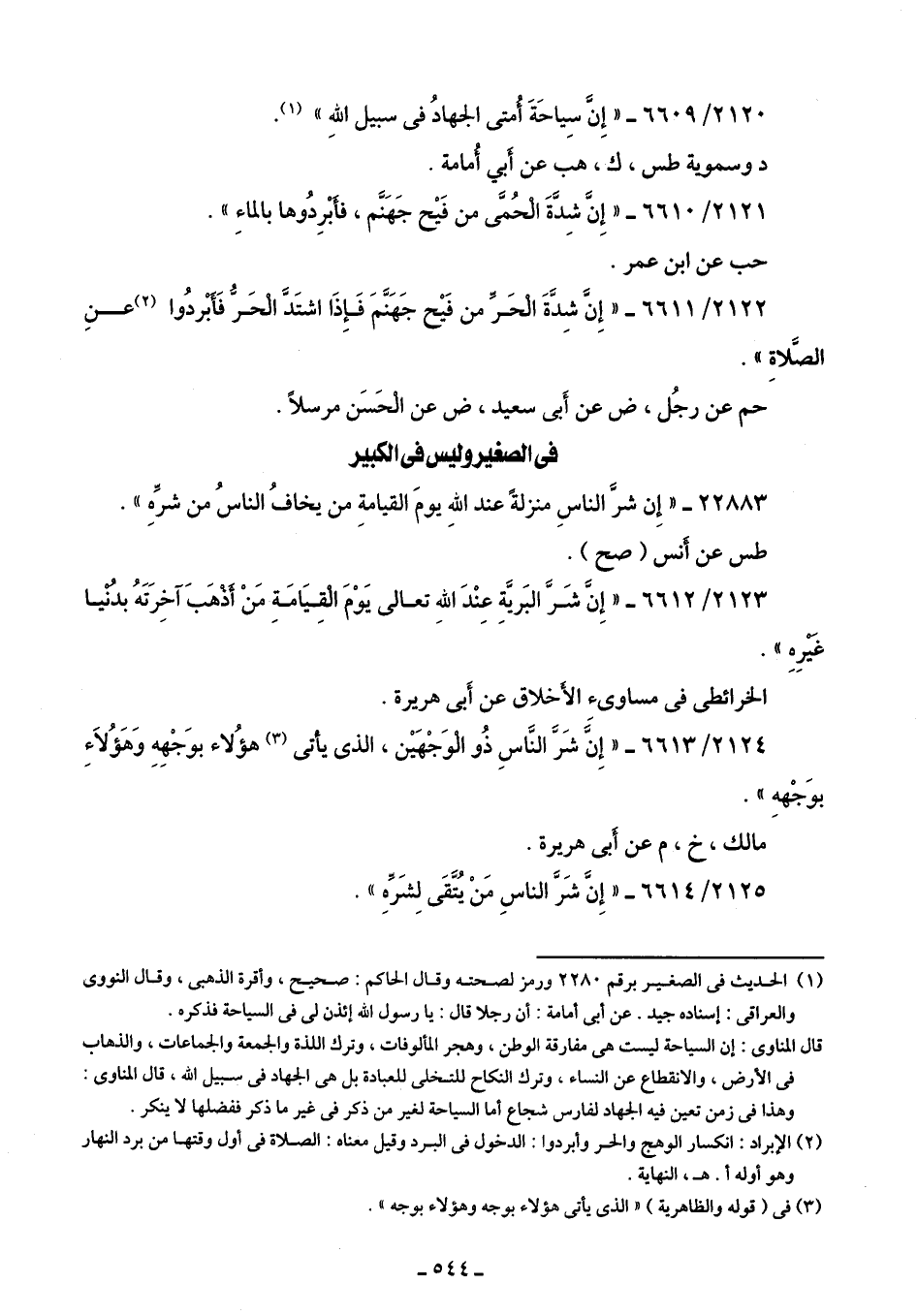 2120/ 6609 - "إِنَّ سِياحَةَ أُمتى الجهادُ في سبيل اللَّهِ" (¬1).