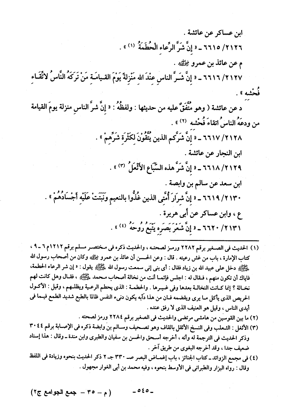 2130/ 6619 - "إِنَّ شِرَارَ أُمَّتِى الذين غُذوُا بالنعيم وَنَبَتَتْ عَلَيْهِ أَجْسَادُهُمْ".