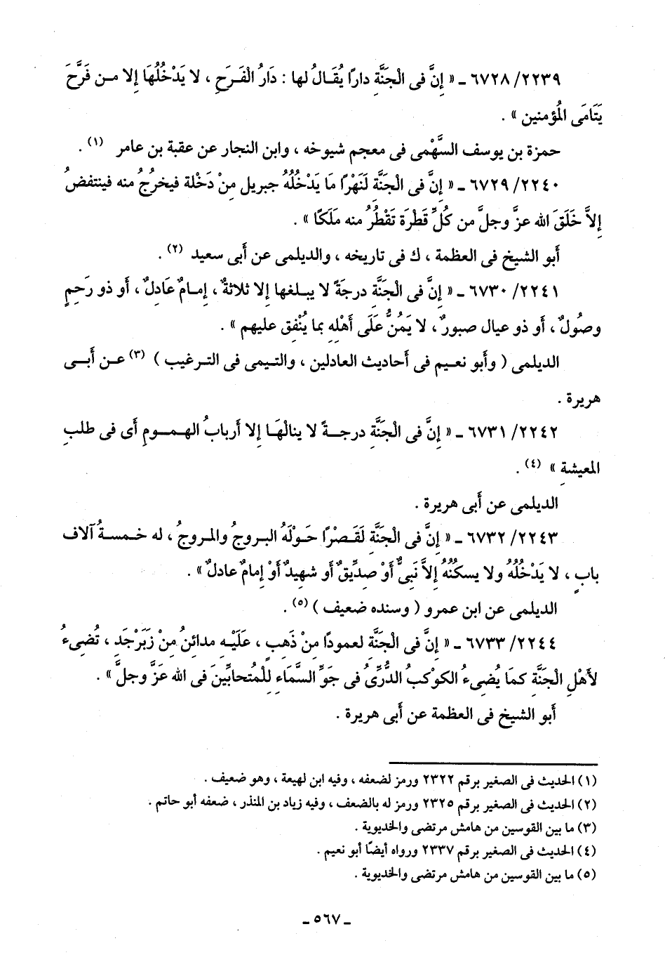 2244/ 6733 - "إِنَّ في الجَنَّةِ لعمودًا مِنْ ذَهِب، عَلَيْهِ مدائِنُ مِنْ زَبَرْجَد، تُضِئُ لأَهْلِ الجَنَّةِ كمَا يُضِئُ الكوْكبُ الدُّرِّىُ في جَوِّ السَّمَاءِ للمُتحابِّينَ في اللَّه عَزَّ وجلَّ".