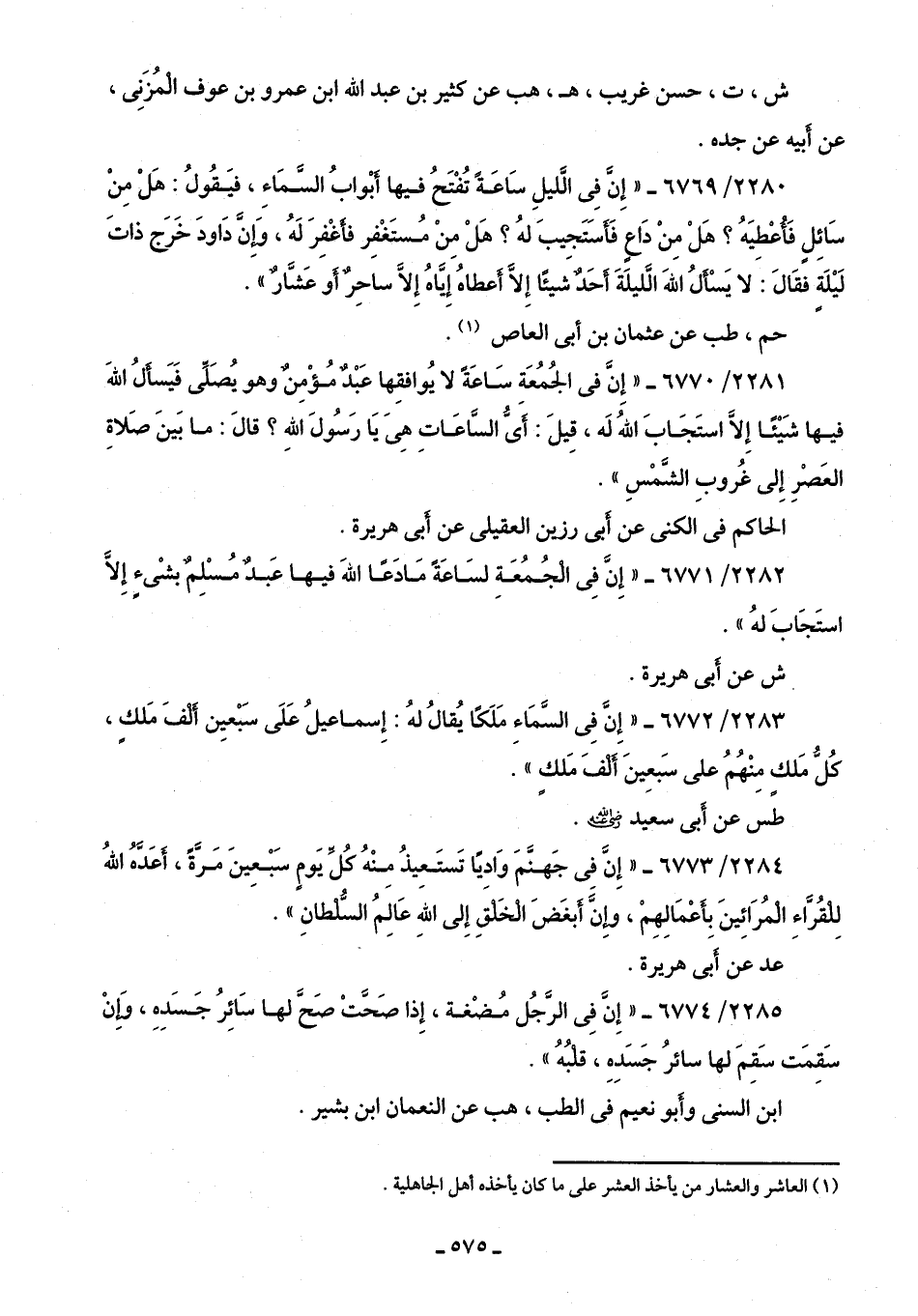 2282/ 6771 - "إِنَّ فِى الْجُمُعَةِ لسَاعَةً مَا دَعَا اللَّهَ فيها عَبدٌ مُسْلِمٌ بشْئٍ إِلَّا استَجَابَ لهُ".