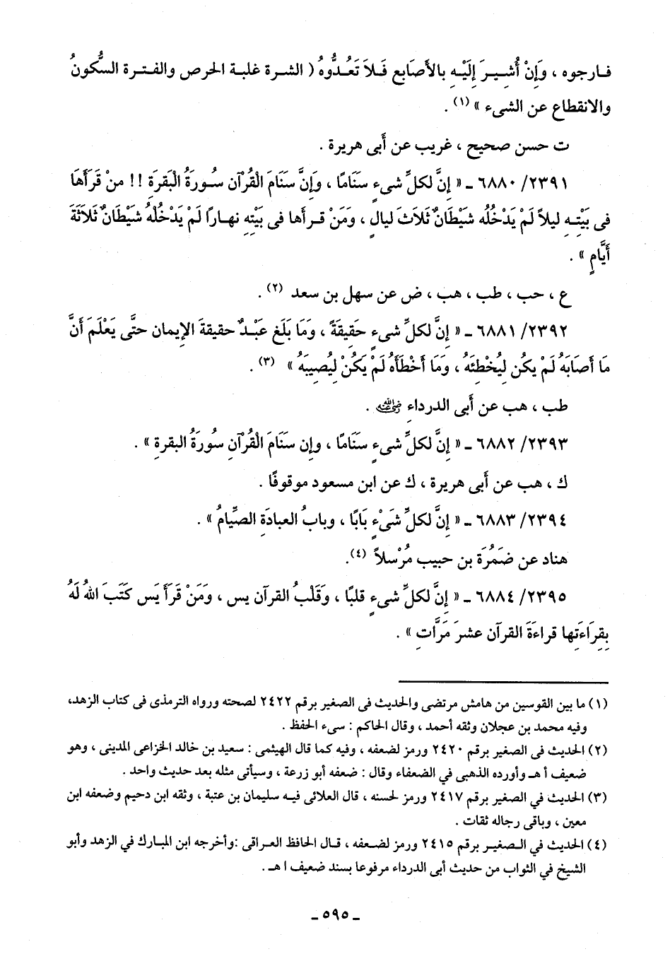 2393/ 6882 - "إِنَّ لكل شئٍ سَنَامًا، وإِن سَنَامَ القُرآنِ سُورَةُ البقرةِ".
