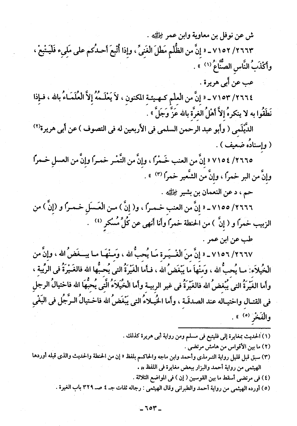 2665/ 7154 - "إِنَّ من العنب خَمْرًا، وَإِنَّ من التَّمْر خمرًا وَإِنَّ من العسلِ خمرًا وَإِنَّ من البر خمرًا، وَإِنَّ من الشَّعير خمرًا (¬3) ".