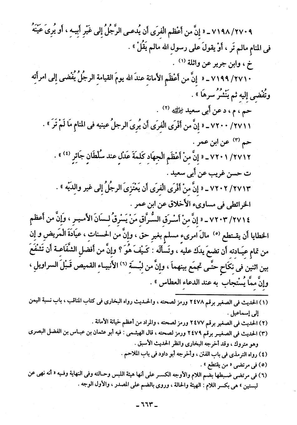 2712/ 7201 - "إِنَّ مِنْ أَعْظَم الْجِهَادِ كلِمَةَ عَدْلٍ عند سُلطَانٍ جَائِرٍ (¬4) ".