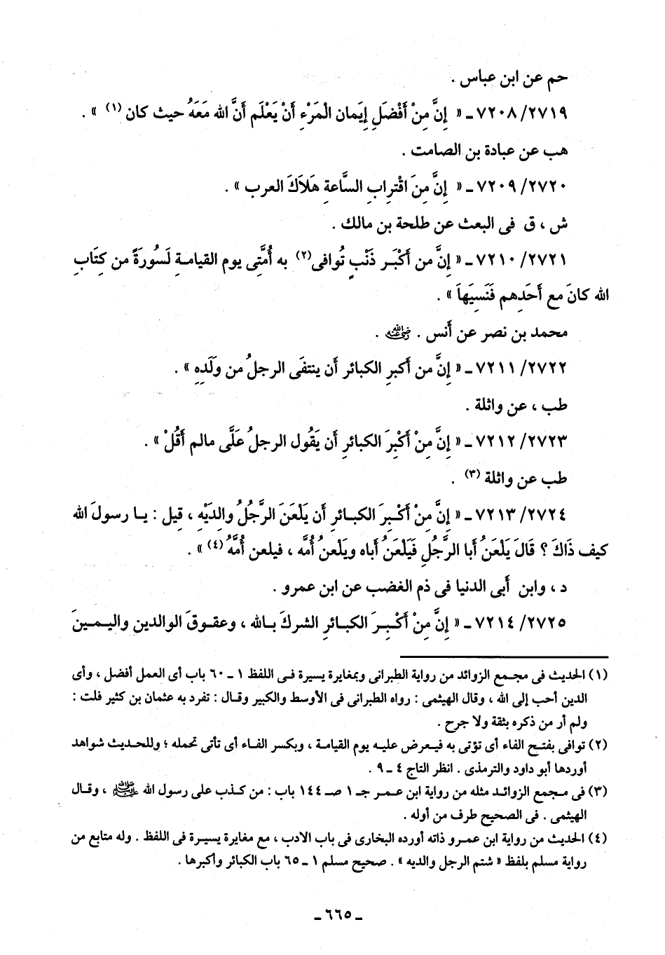 2724/ 7213 - "إِنَّ مِنْ أَكْبِرَ الكبائرِ أَن يَلعَنَ الرَّجُلُ والدَيْه، قيل: يا رسولَ اللَّه كيف ذَاكَ؟ قَالَ يَلْعَنُ أَبا الرَّجُلِ فَيَلْعَنُ أَباه ويَلْعنُ أُمَّه، فيلعن أُمَّهُ (¬4) ".