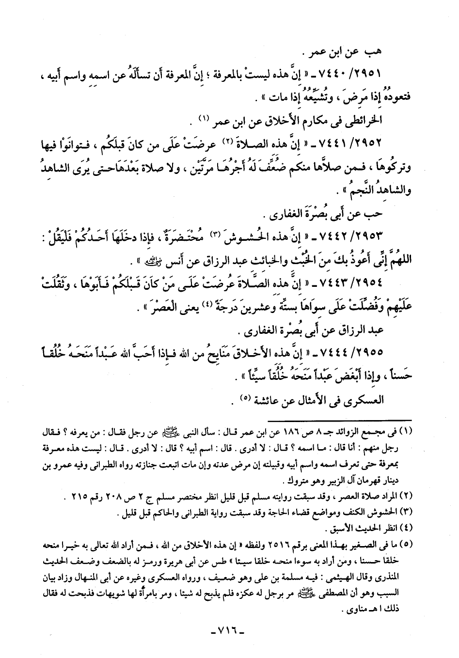 2951/ 7440 - "إِنَّ هذه ليستْ بالمعرفة؛ إِنَّ المعرفة أَن تسأَلَهُ عن اسمِهِ واسم أَبيه، فتعودُهُ إِذا مَرِضَ، وتُشيِّعُهُ إِذا مات".